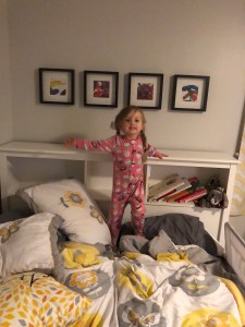 She wouldn’t get out of her bed. Ever. On the weekend she would play and read until we came to get her. It was lovely. It was as if the floor was hot lava. I could take a shower and not worry.