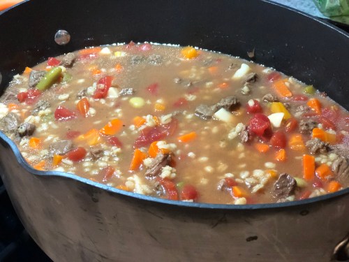 It’s one of those days. Chilly and wet and lazy. When I was making my meal plan mid week, I checked the weather and knew it would be a good day for soup. Which one? I make a few tasty soups that would fit the bill. Then I remembered my aunt had asked me recently for grandma’s vegetable beef barley soup.