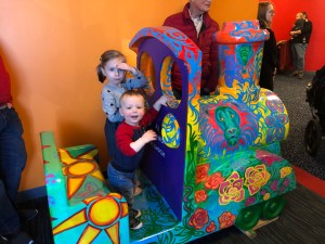 They ran from exhibit to exhibit playing with everything they could get their hands on. She wanted to build and he wanted to spend his time cleaning the museum. Seriously, he kept putting everything away. We discovered 3 or 4 new kinds of building materials.