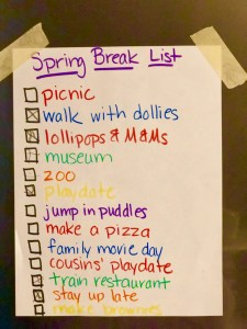 She insisted on looking at her list before bed last night. We had already planned on going to the children’s museum but she just wanted to make sure.
