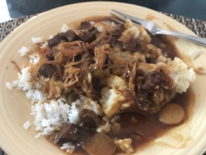 Mom’s famous chopped suey with rice…and mashed potatoes