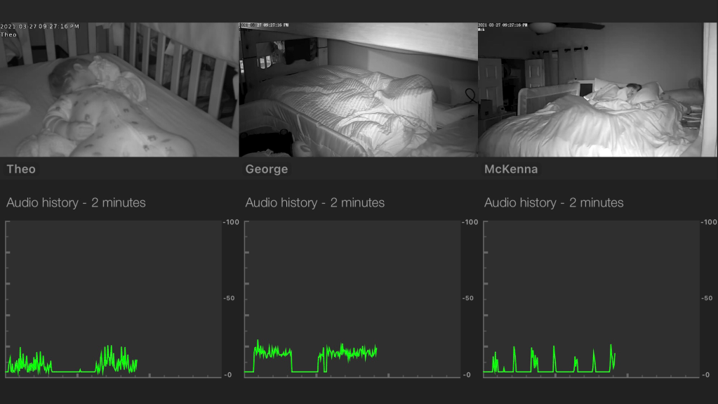 Eventually we landed on a routine. George went to bed around 7:15 falling right to sleep. McKenna snuggled or hung out in her room until lights off around 7:30-7:45. Theo stayed with us until we could put him down after the Bigs had both settled and we put him in his bed awake.