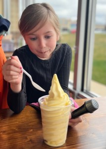 Then brilliance struck. McKenna’s favorite treat in the whole world is pineapple Dole Whip. You know the kind…from Disney. There is restaurant near us called Island Fin Poke that serves 2 flavors of Dole Whip daily. I called to verify today’s flavors…pineapple and raspberry! We were in luck! I told the kids if we left now, we would make it in time for Dole Whip happy hour—just $4 for a GIANT serving—and they had our favorite flavor. They were all in.