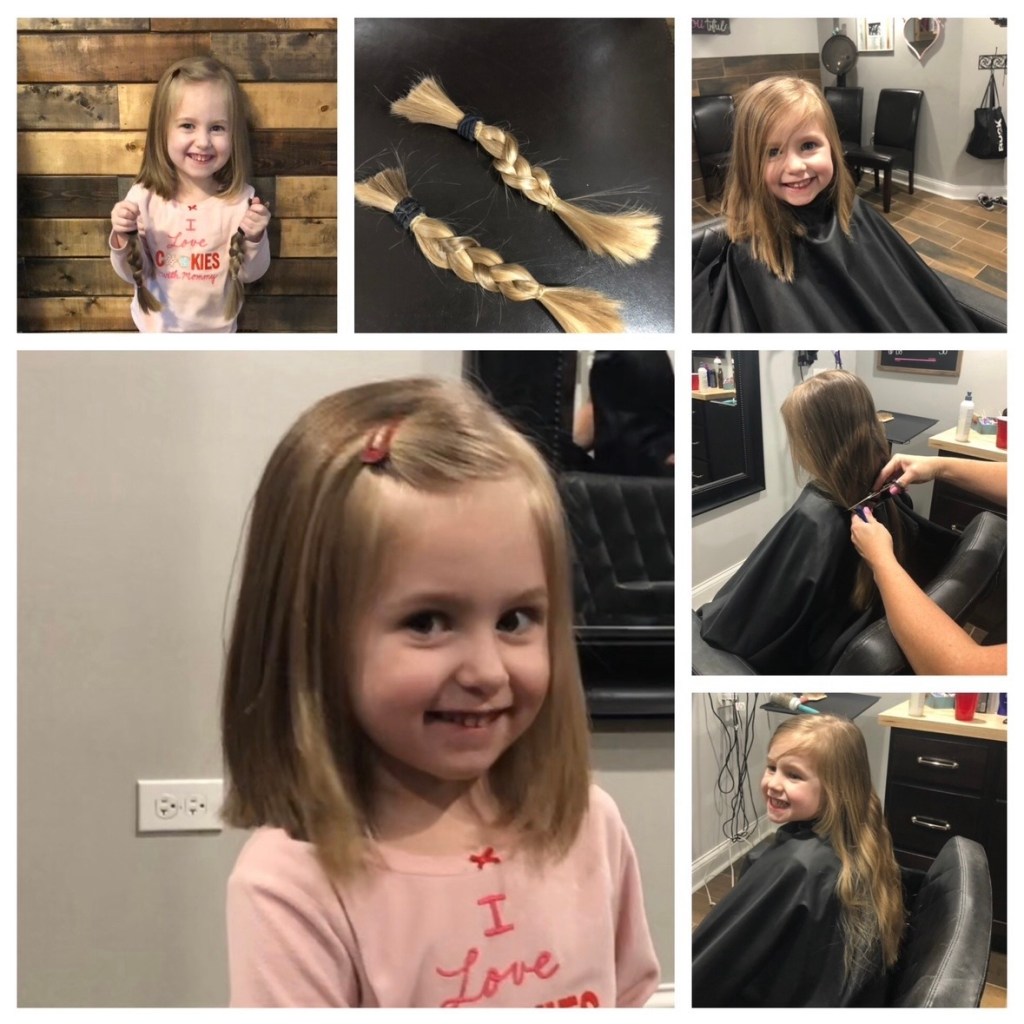 She wore it long for years. Then one day she decided to wanted to cut it shorter. I decided if she wanted it that way, great, but we were going to donate it. And she was going to be CERTAIN. I explained to her once it was gone, we could not put it back. She seemed fine with it. After a lot of research about where to donate, my sister cut 12 inches in a couple of braids. It was so cute. The next day she asked me to glue it back on. She was not yet four years old.