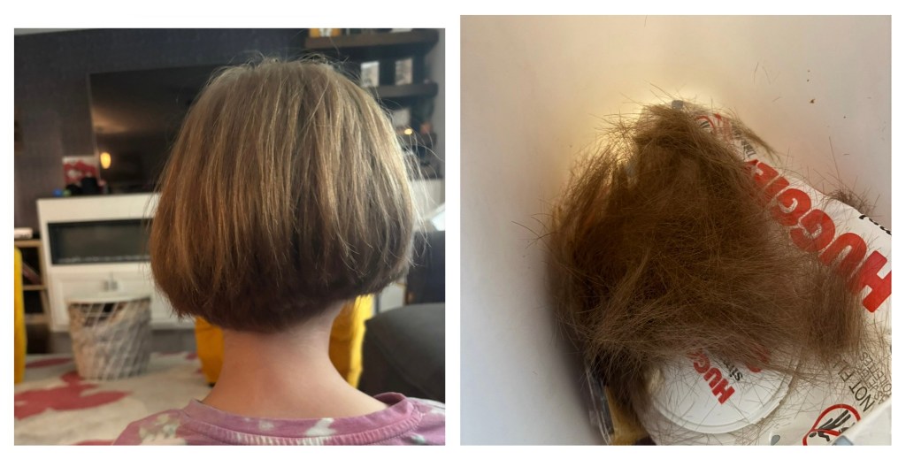 A week or two later, I noticed her choppy hair. She had cut it shorter herself. I could have killed her. She was so sure I was going to punish her. But the punishment was the terrible haircut. We’ve al been there having made a rash decision. Am I right? She needed to wait until our stylist could get her in to fix it.