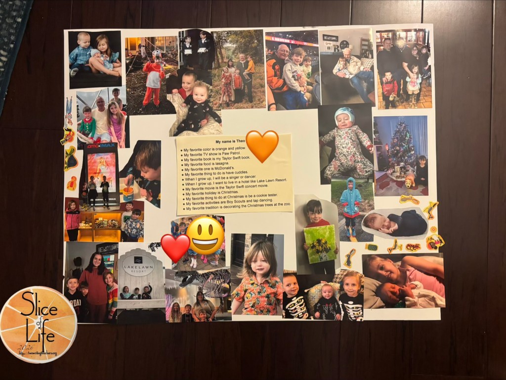He made the poster with Aunt Eve on Saturday night but wanted me to help with the sentences. He was so excited for his project but he was too tired to write. So, he used speech-to-text to answer the questions I asked him and we printed them out. Putting that AT knowledge to good use. His teacher graciously said he could do it upon his return.